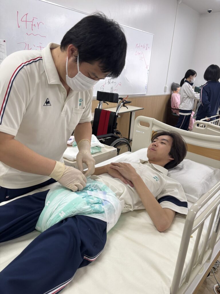看護学科1年生 看護技術実技試験 ~患者役はバディの先輩です~