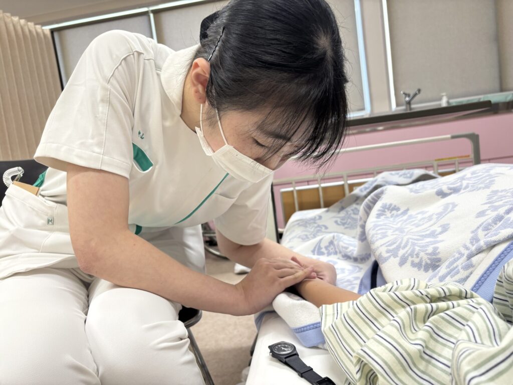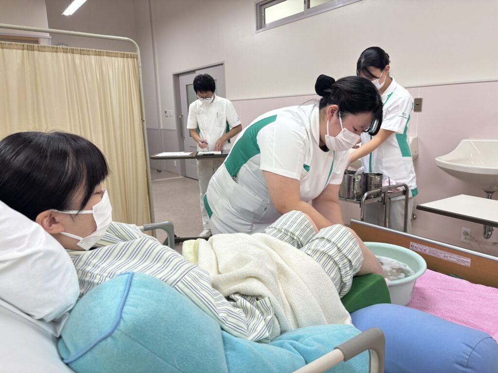 この科目は、グループで事例展開を行い、症状や状況に応じて必要な看護援助技術を考え、安全安楽に基礎看護技術を実施し、個別性に加えて柔軟性や実践能力を養っていきます。
