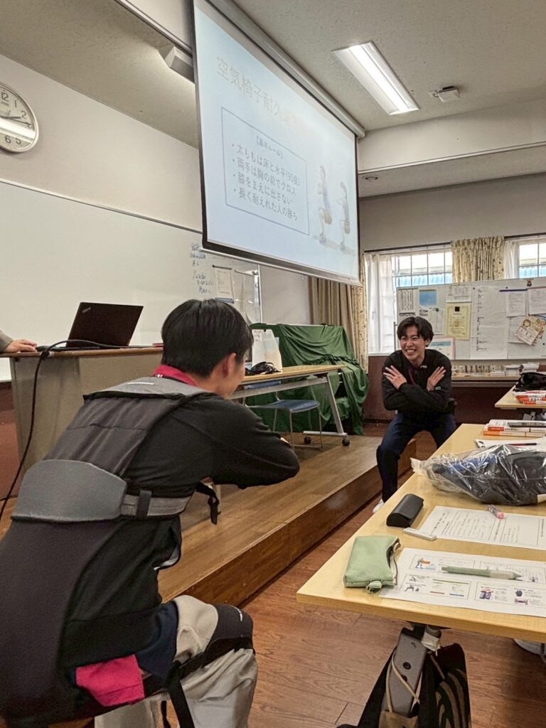 スマート介護を学んでいる介護福祉学科1年生は、ダイヤ工業株式会社様にお越しいただき、様々な
