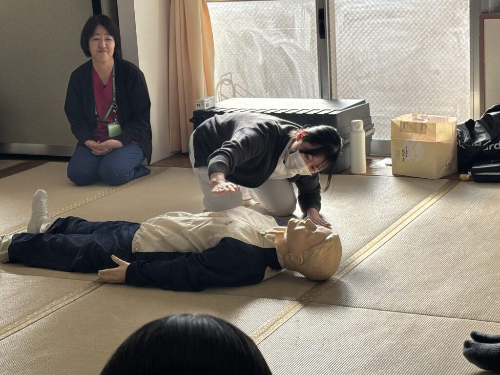 授業では、AEDの使い方や校内・周辺の設置場所を確認に、万が一の場面で行動できるよう意識づけを行いました。
