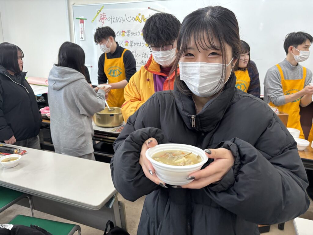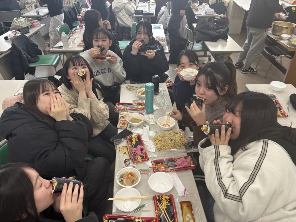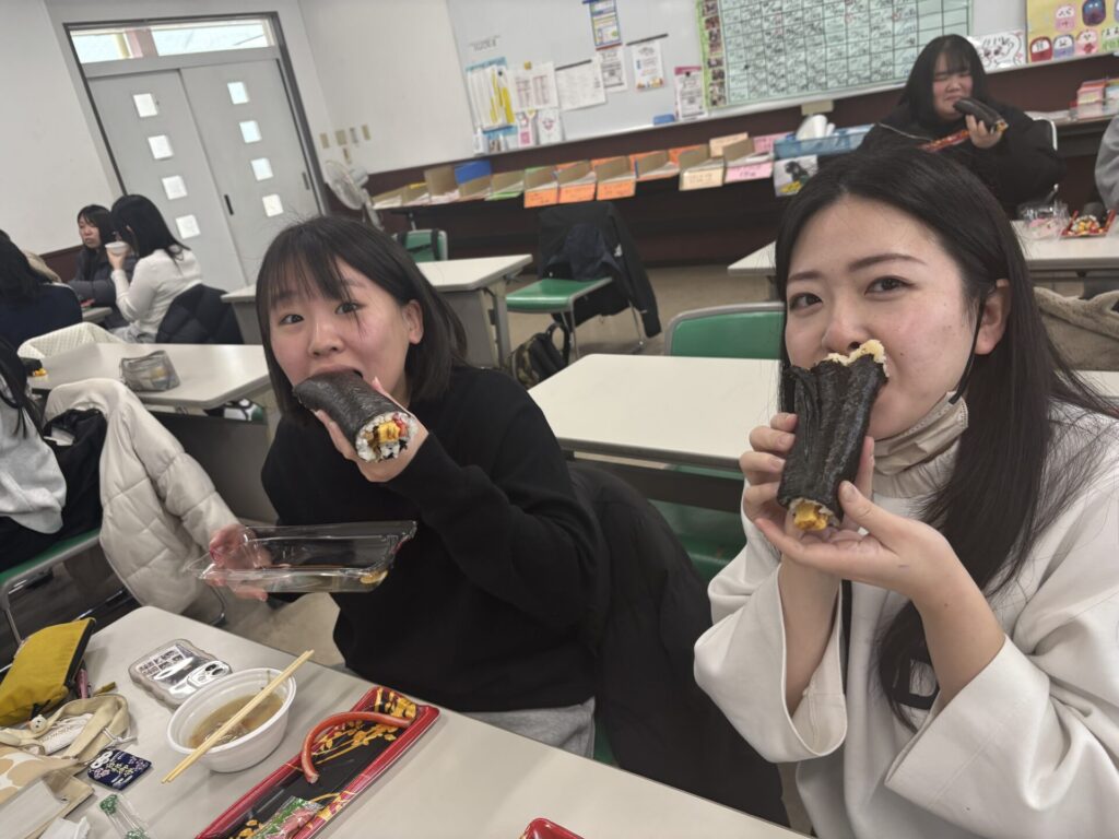 なんと、同窓生の皆さんが来校し、手作りの豚汁と、節分にちなんだ恵方巻を振る舞ってくださいました。