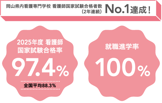 病院付属ではないメリットは他にもあります。沢山の実習病院で実習を行なっているため、その中から自分の考えに合った病院に就職したり、自分の希望する専門の病院を選ぶことができます。県外から入学してくれる学生も多いために、医療のレベルが高い岡山県で学んだ知識や技術を地元に持ち帰っています。就職は本人の自由!これが私たちの考え方です。※全国各地の病院から奨学金の提示をしていただいています。