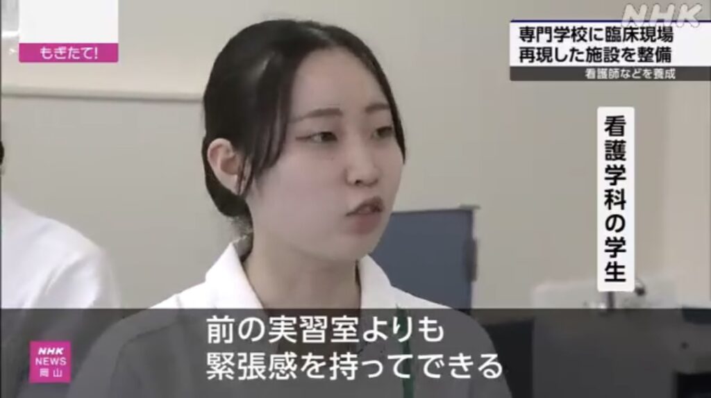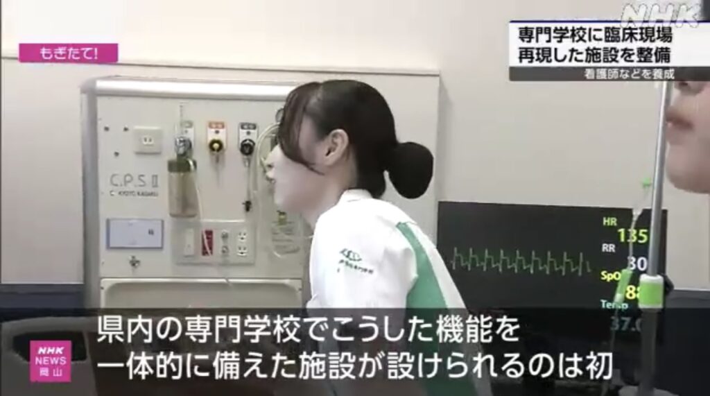 この新実習室は、少子高齢化や複雑な疾病構造の変化に対応すべく、岡山県内の専門学校初のシミュレーションルームやディフレーションルームを設置しています。