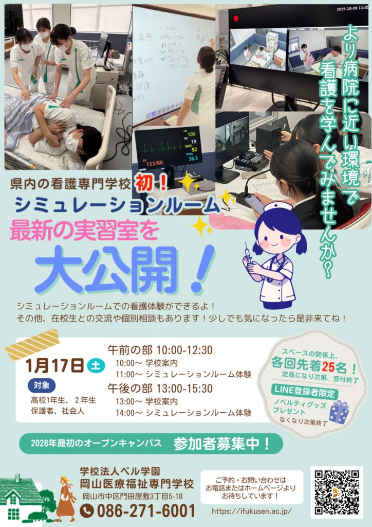 岡山県内「初」のシミュレーションルームで看護体験ができます。